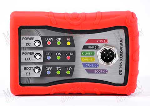 Диагностический инструмент Breakbox , разработан, для установки между устройством диагностики / программирования и блоком ECU. Он обеспечивает питание блока и позволяет избежать короткого замыкания или перегрузки мощности благодаря автоматической системе блокировки, которая анализирует электрические соединения и реагирует до того, как устройство или ECU получит любые повреждения.